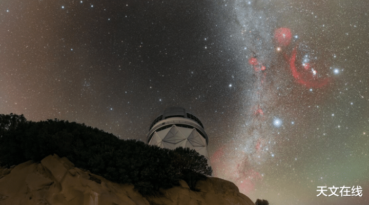 基特峰天文台的尼古拉斯·乌尔里希·梅奥尔4米望远镜,上面有银河系。